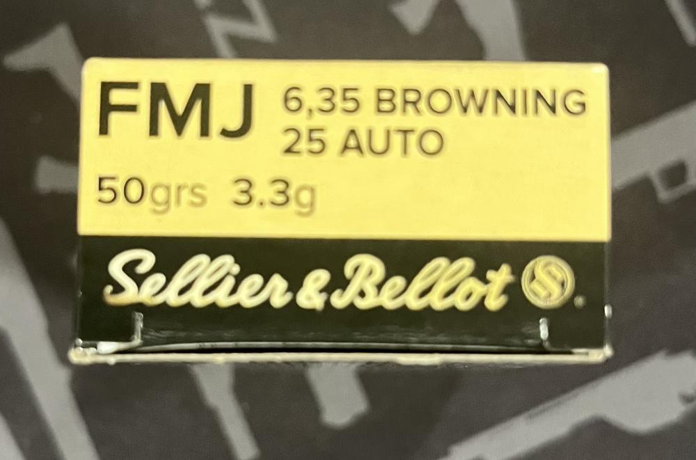 Náboj 6,35 Br. FMJ SB. Skladem.