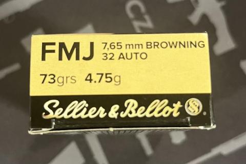 Pistolové náboje 7,65 Browning se střelou FMJ 73 grs. Skladem.