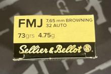 Pistolové náboje 7,65 Browning se střelou FMJ grs. Skladem.