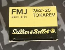 Náboj 7,62x25 Tokarev FMJ SB. Skladem.